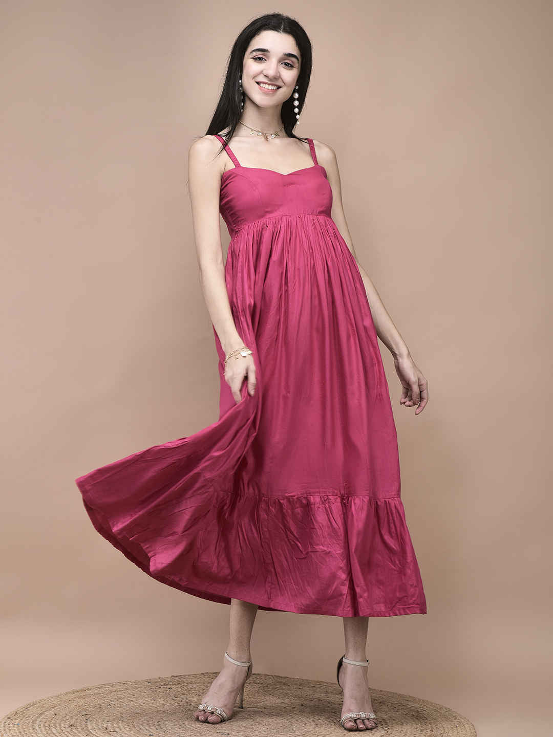INR 3,549INR 3,549 INR 3,549/Effortless, breezy, and oh-so-feminine — this tiered maxi dress is your go-to for sunshine days and soft moments.Crafted from cotton, it features a delicately ruched bustier...
